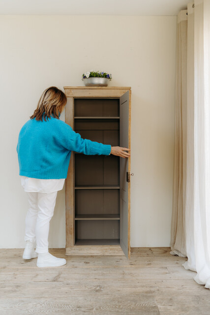 rests of old blue paint on this Spanish pinewood cabinet...