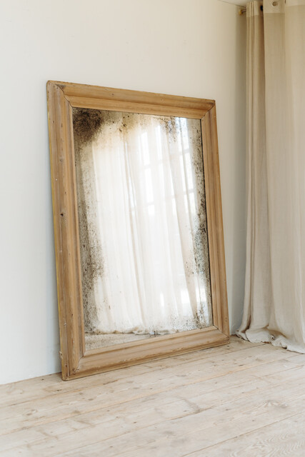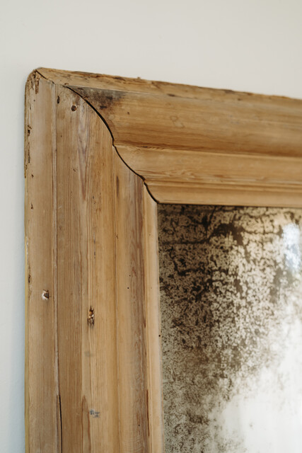 pinewood framed mirror ...foxed mirror glass ...